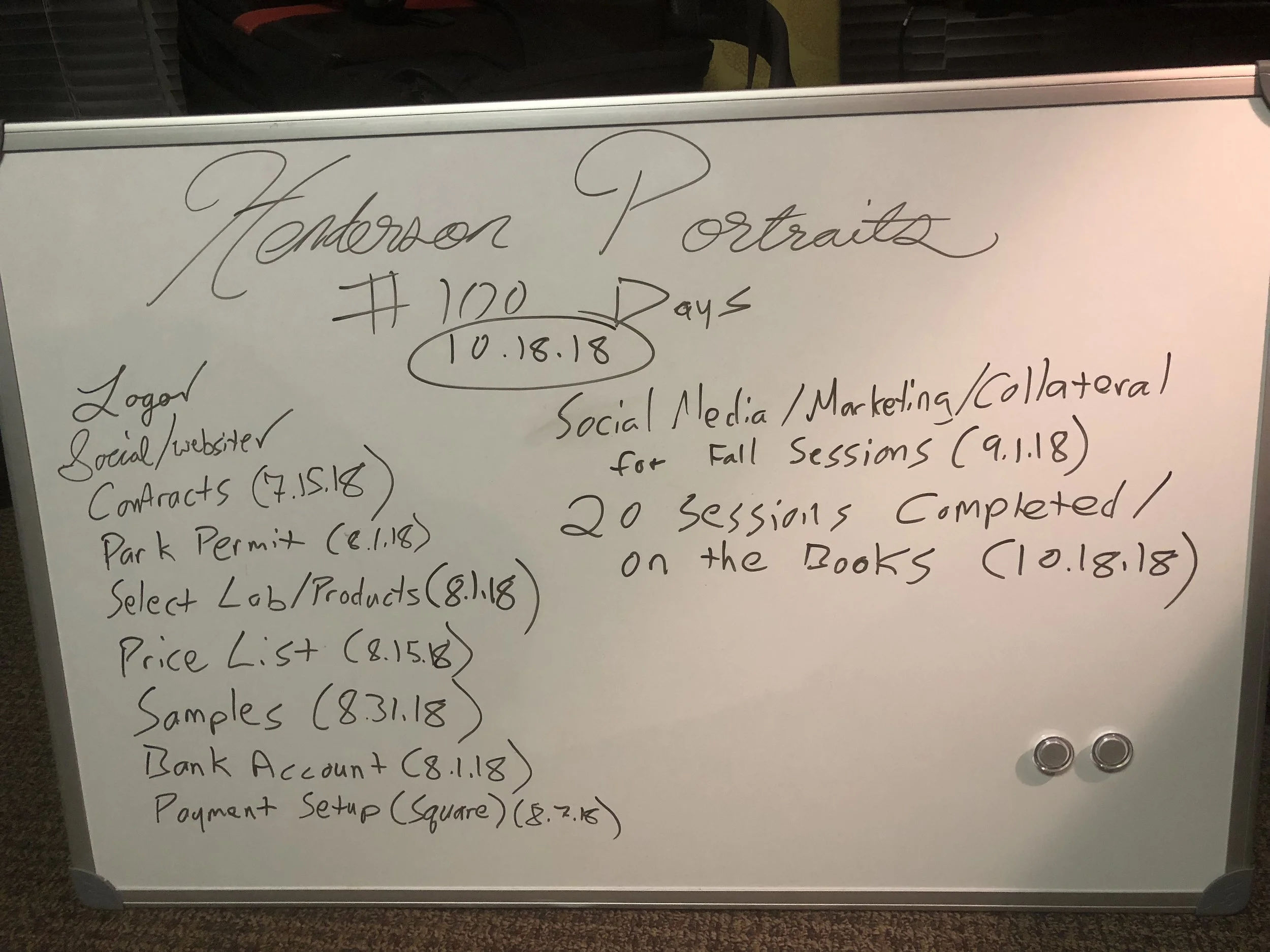 Yesterday, I saw a post on twitter about the #100Day challenge, where you're supposed to create some kind of art every day for 100 days. I thought, why don't I do that challenge, but instead of creating art I work for the next 100 days to change my life and get my photography business off the ground. I set a goal of having 20 sessions completed/booked by Oct 18th, 2018.
